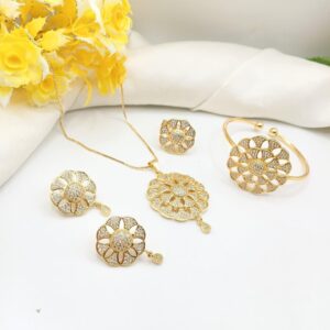 Premium Gold-Plated Heart Style Combo Set – Micro Zircon Work with Adjustable Ring