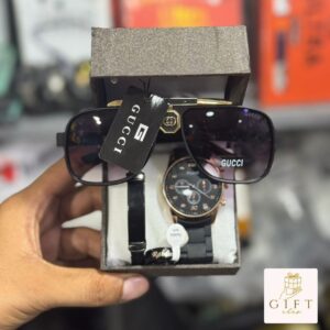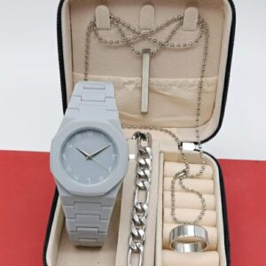 Aura Gents Luxury 5-Piece Gift Set: Premium Watch, Fiber Chain, Bar Locket & Accessories Bundle