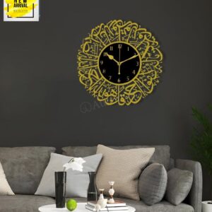 Premium Islamic Acrylic Wall Clock – Golden & Transparent 3D Calligraphy Decor