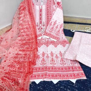 Heavy Thread Embroidered 3-Piece PC Cotton Suit – Chicken Kari Daman & Monar Dupatta